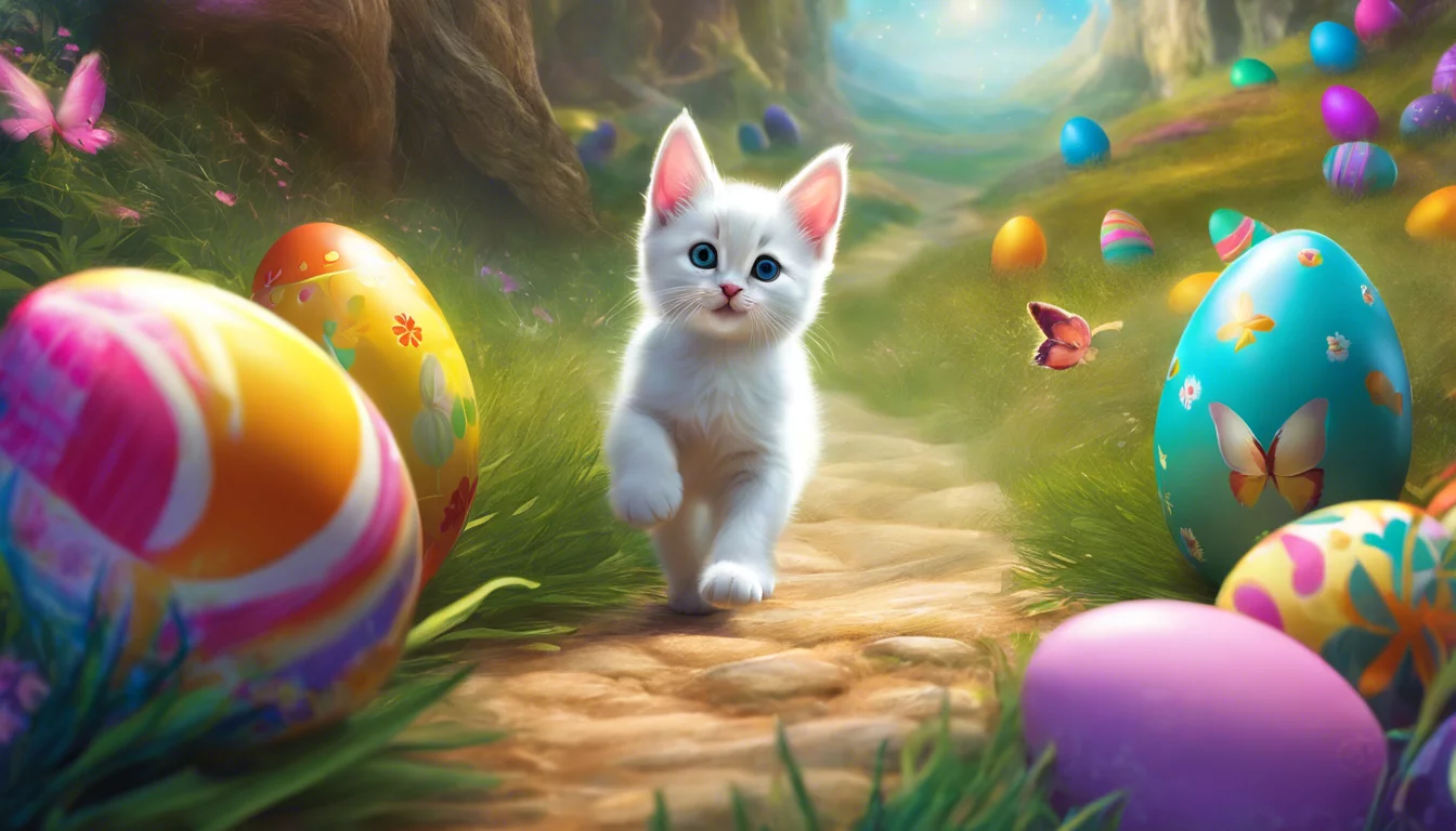 And so, the mischievous kitten and the Easter Bunny became the unlikeliest of friends, reminding everyone that sometimes, the most unexpected journeys can lead to the most wonderful friendships.