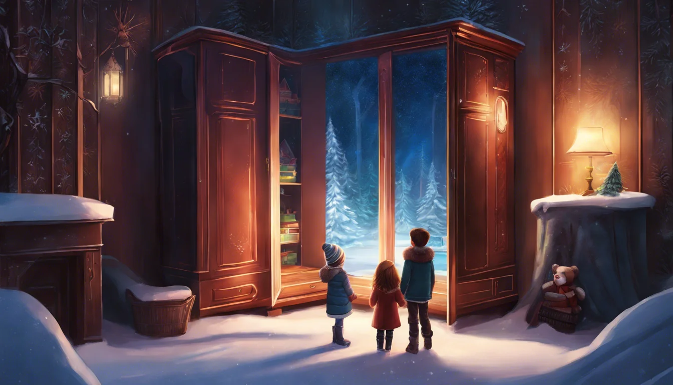 Once upon a time, in a cozy little room adorned with wallpaper of pale blue skies and fluffy white clouds, there stood an old, ornate wardrobe that held a secret more wondrous than any could imagine. This was not just any wardrobe; it was a gateway to a magical world, a snowy wonderland where animals spoke in hushed whispers and tales of adventure were woven into every snowflake.
